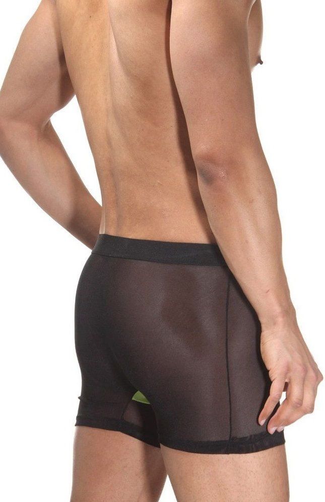 Мужские полупрозрачные трусы-боксеры с неоновой вставкой.