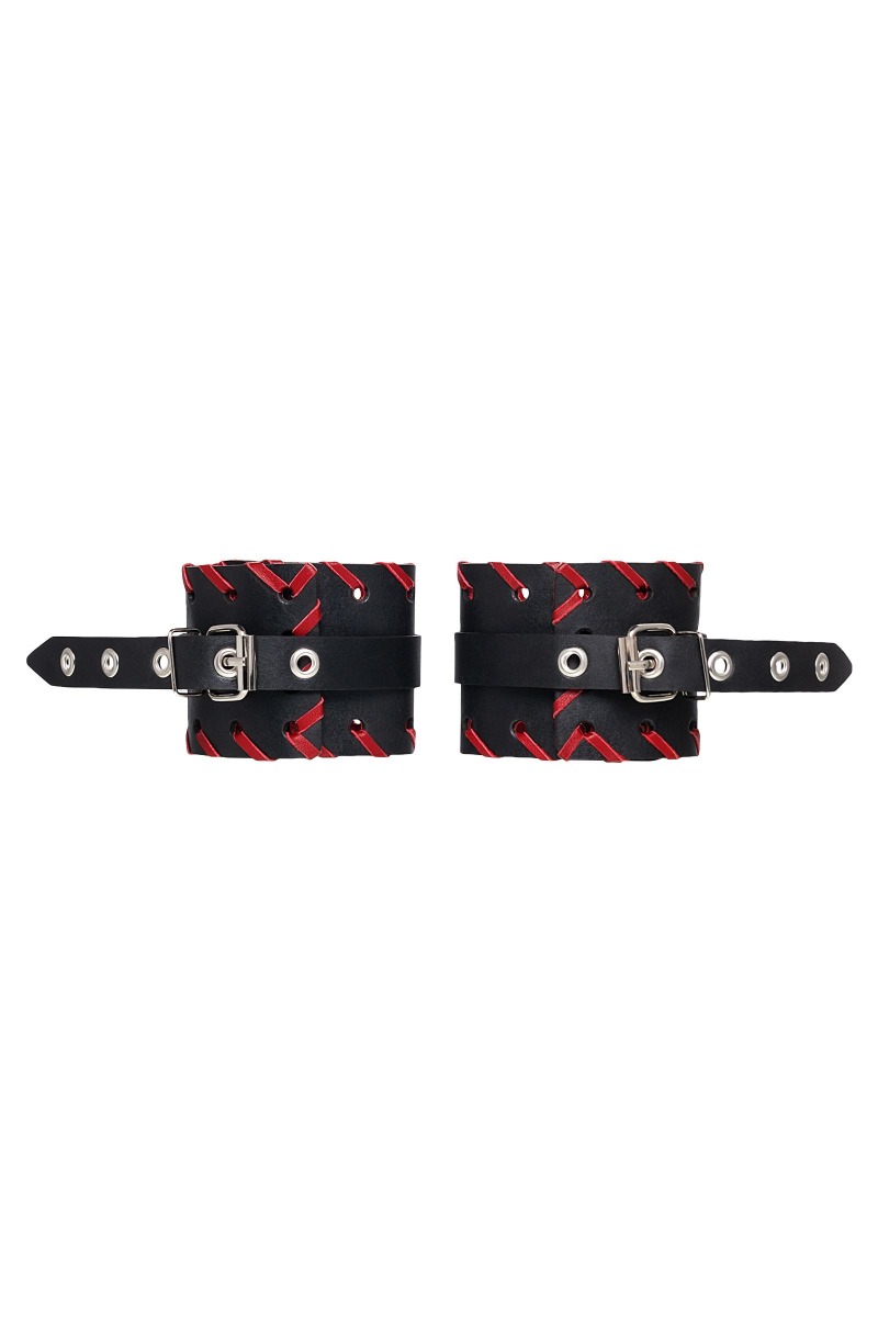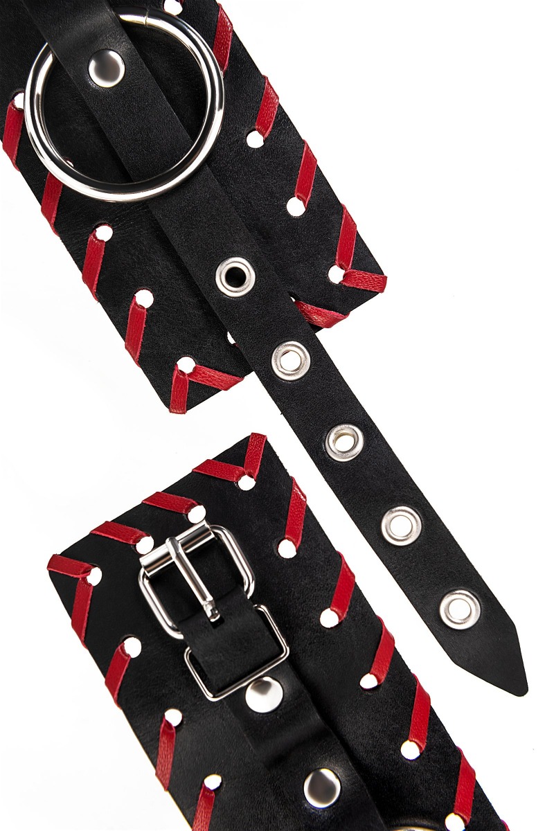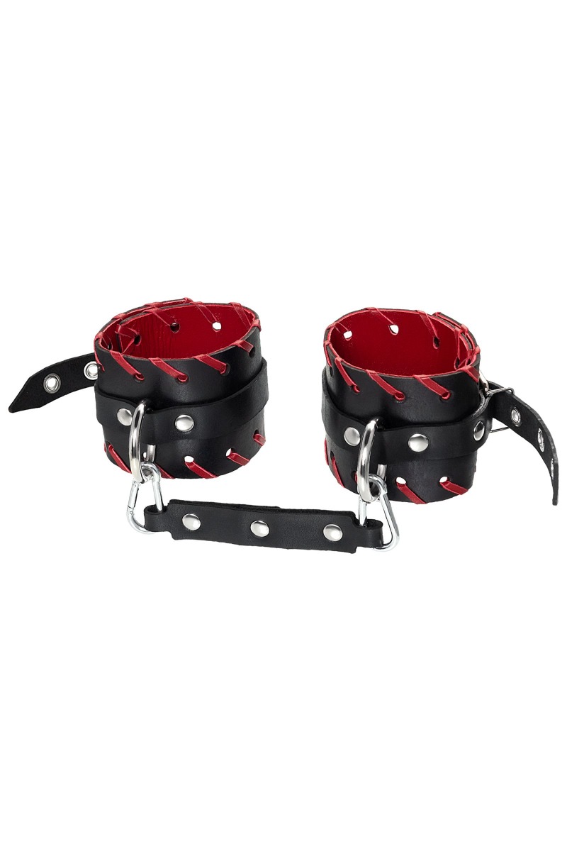 Готовы играть по-взрослому? Не бойтесь своих желаний! Основатели бренда уверены: лучший способ избавиться от искушения - поддаться ему! Добавьте пикантную деталь в ролевую игру и воплотите самую смелую сексуальную фантазию в реальность! Двухслойные кожаные оковы с окантовкой красного цвета, могут стать стильным аксессуаром на «свободных» руках, но могут послужить вашим целям и фантазиям по своему прямому назначению. Наличие двух карабинов и колец позволяет использовать изделие как раздельно – аксессуар-манжеты, так и как наручники для фиксации. К широким металлическим кольцам также можно присоединить и другие аксессуары при помощи карабинов. Благодаря универсальному размеру наручники могут использоваться и мужчинами, и женщинами. Размер легко регулируется с помощью металлических пряжек, органично вписывающихся в общий стиль. Длина манжет - 25 см, ширина манжет - 6,5 см. Длина сцепки - 20 см.