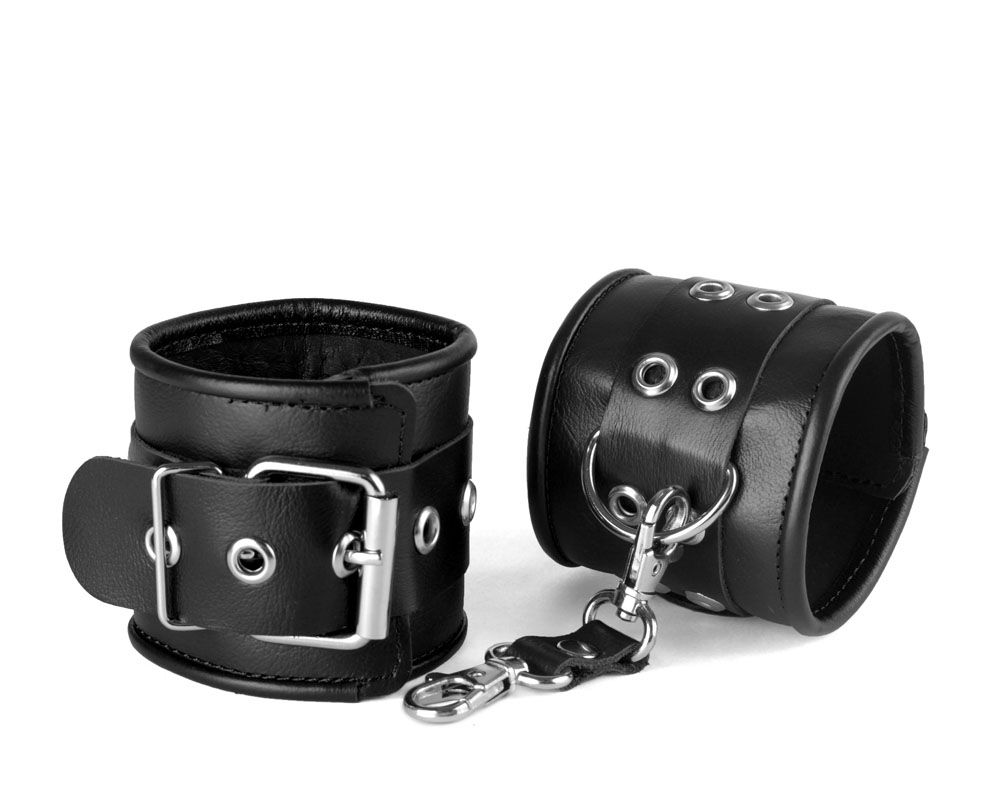 Изготавливаются из натуральной кожи с велюровой подкладой. При изготовлении использована фурнитура с никелевым покрытием. Между слоем основы и подкладой проложена мягкая прокладка. Соединяются между собой коротким ремешком с двумя карабинами на концах. Не нарушают кровообращение, надёжно фиксируются на запястьях. Размер универсальный.