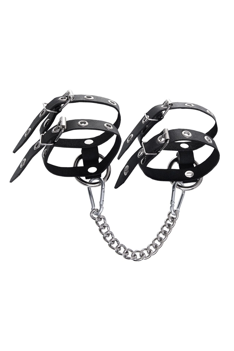 Эти однослойные кожаные оковы из двух ремешков могут стать стильным аксессуаром, а могут послужить вашим целям по своему прямому назначению. Частичное обездвиживание и невозможность двигать руками или ногами дают вам полную власть над партнером – взрослые игры для взрослых. Наличие двух колец и карабинов, соединенных между собой металлической цепочкой, позволяет использовать изделие как раздельно – аксессуар-манжеты, так и как оковы для фиксации. К широким металлическим кольцам также можно присоединить и другие аксессуары при помощи карабинов. Благодаря универсальному размеру оковы могут использоваться и мужчинами, и женщинами. Размер легко регулируется с помощью металлических пряжек, органично вписывающихся в общий стиль. Длина манжет - 30 см, ширина ремешков - 1,6 см. Длина сцепки - 19 см.