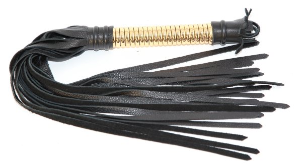 Плетка изготовлена из кожи, является одной из наиболее популярных секс-игрушек. БДСМ-атрибутика с жесткой рукоятью со стильной золотистой оплеткой поможет расширить границы удовольствия.