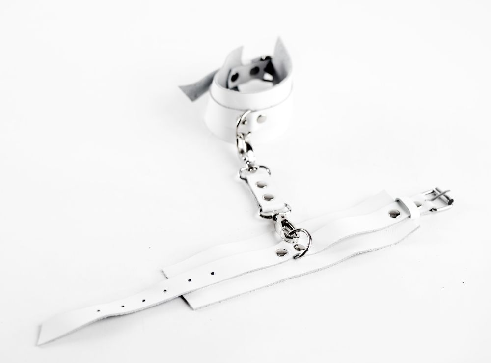 Нежные и элегантные оковы из натуральной кожи белого цвета никого не оставят равнодушным. Вся фурнитра выполнена из высококачественного металла, который гармонично сочетается с белой кожей и делает аксессуар не только функциональным, но и стильным. Натуральная кожа делает использование изделия очень комфортным. Ширина - 5 см. Обхват - 21-30 см.