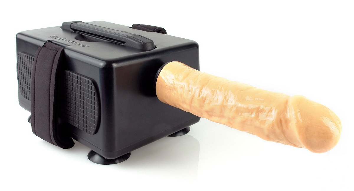 Секс-машина для вагинально-анальной стимуляции. В комплекте 2 насадки - телесная и гладкая сиреневая. Также имеется выносной вибратор для клиторальной, вагинальной и анальной стимуляции. Машина работает от сети, на днище имеются присоски для фиксации. В комплекте: пуховая кисточка, маска на глаза, лубрикант и средство для очистки секс-игрушек.