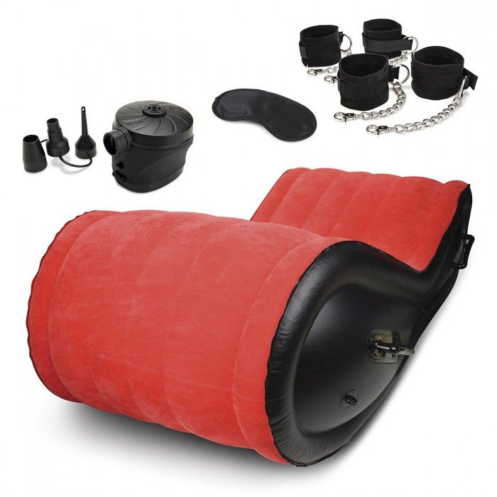 Надувная секс-софа для БДСМ-игр включает в себя все, что вам нужно, чтобы улучшить сексуальную парную игру с элементами бондажа. А также это просто универсальный предмет мебели, который позволит вам попробовать секс в новых захватывающих позах. Эта надувная кровать, выполненная в классической эротической цветовой комбинации красного и черного, она манит вас своей бархатистой мягкой поверхностью и своими чувственными изгибами, изготовлена из прочного ПВХ и покрыта бархатистым материалом для комфорта. Получите удовольствие от экспериментов с прилагаемыми манжетами для запястий и щиколоток. Простые в использовании манжеты удобны для новичков и являются идеальным введением в мир БДСМ-игр. С комфортом передайте контроль за ситуацией. Лежа и расслабляясь, позволяйте своему доминирующему партнеру взять на себя все управление сексуальной игрой, пока вы подчиняетесь его стимулирующим прикосновениям. Софу можно надуть в любой момент, когда наступит сексуальное настроение, а также можно сдуть, когда игра закончится. Помимо фиксаторов для запястий и щиколоток в комплекте к софе предлагается черная маска и насос.