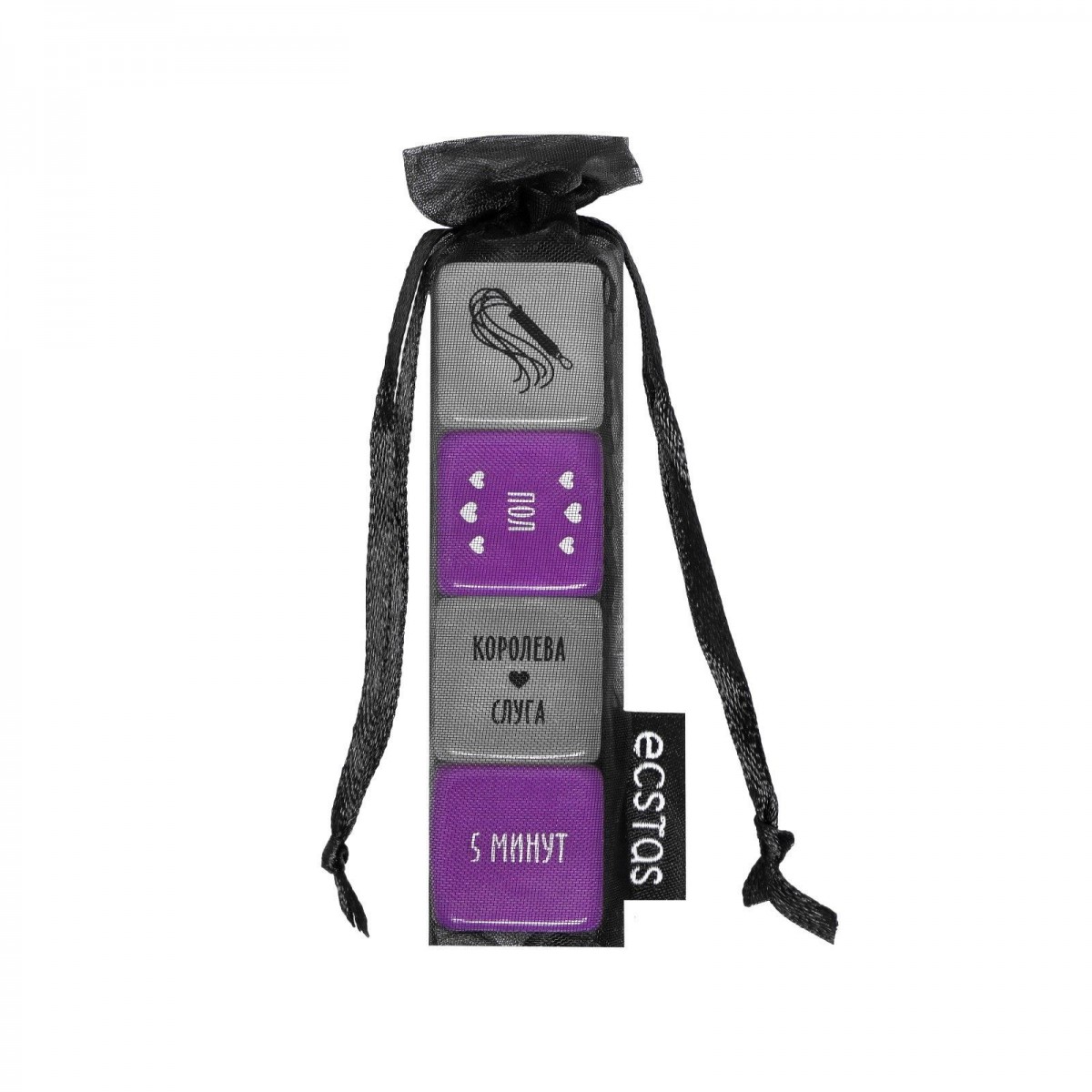 Воплотите в жизнь самые смелые фантазии! Представляем вам серию премиальных эротических кубиков. Хотите познать все грани наслаждения и разнообразить сексуальную жизнь? Тогда этот набор - то, что вам нужно. Внутри вас ждут 4 кубика. Первый определит роли, второй - место, третий - атрибут, который нужно использовать, а четвёртый - время ласки.И что с этим делать? Просто по очереди или одновременно бросьте кубики и воплотите в жизнь указанное. В комплекте: 2 неоновых кубика, 2 фиолетовых кубика, мешочек для хранения.