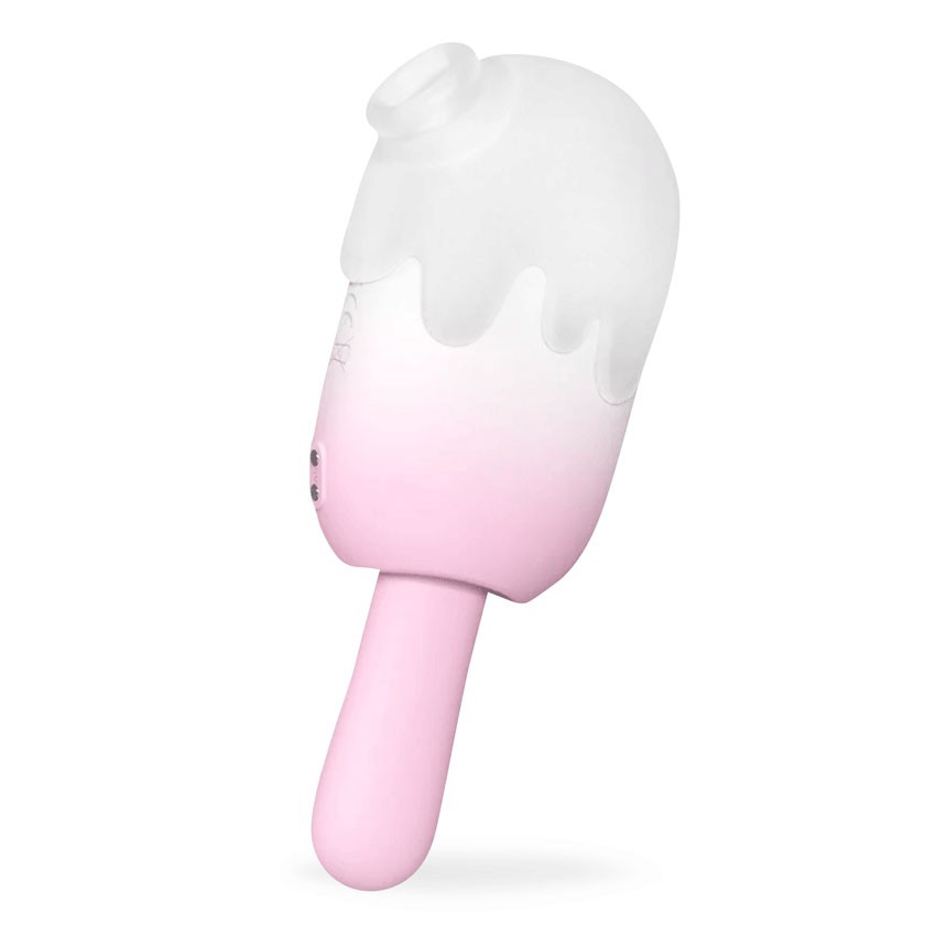 Вибромассажёр в виде аппетитного мороженного придётся по вкусу любителям оригинальных секс-гаджетов. Её «вкусный» дизайн в сочетании с разнообразными режимами вибрации, пульсации и всасывания подарят как эстетическое, так и эротическое удовольствие. Интимный аксессуар может использоваться для прелюдии или усилить удовольствие во время близости. Вибрация ощущается по всей поверхности изделия. «Палочка» двигается в разные стороны, расширяя возможности её применения. Съёмная силиконовая насадка имеет отверстие, через которое чувствуется одновременно пульсация и посасывание. Если убрать насадку, то будет ощущаться только пульсация. Секс-игрушка изготовлена из мягкого приятного на ощупь материала. Проста в использовании и уходе. Управление вибрацией: Включение/выключение изделия: нажать и несколько секунд удерживать соответствующую кнопку на корпусе гаджета. Должен загореться/погаснуть световой индикатор и прозвучать звуковой сигнал. Переключение режимов вибрации: краткое нажатие той же кнопки. Управление режимом пульсации/всасывания: Включение/выключение изделия: нажать и несколько секунд удерживать соответствующую кнопку на корпусе гаджета. Должен загореться/погаснуть световой индикатор и прозвучать звуковой сигнал. Переключение режимов пульсации/всасывания: краткое нажатие той же кнопки. Рабочая длина - 5,4 см.
