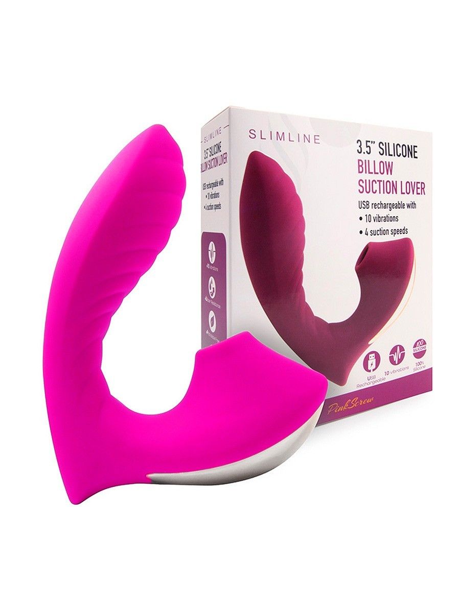 Оригинальный вибромассажёр с 10 режимами вибрации и вакуума. Подойдёт для стимуляции влагалища и клитора. Эргономичная форма способствует безболезненному введению интимного аксессуара и дарит незабываемое удовольствие. Изогнутый ствол позволяет воздействовать на точку G, а его ребристая поверхность усиливает возбуждение. Секс-игрушка изготовлена из приятного на ощупь бархатистого материала. Проста в использовании и уходе. Включение/выключение вибрации и вакуума: нажать и несколько секунд удерживать кнопку вкл./выкл. Должен загореться/погаснуть световой индикатор. Вибрация и вакуум включаются и работают только одновременно. Переключение режимов вибрации и вакуума: краткое нажатие кнопок с изображением +, или -. Рабочая длина - 10 см, диаметр - 3,5 см.